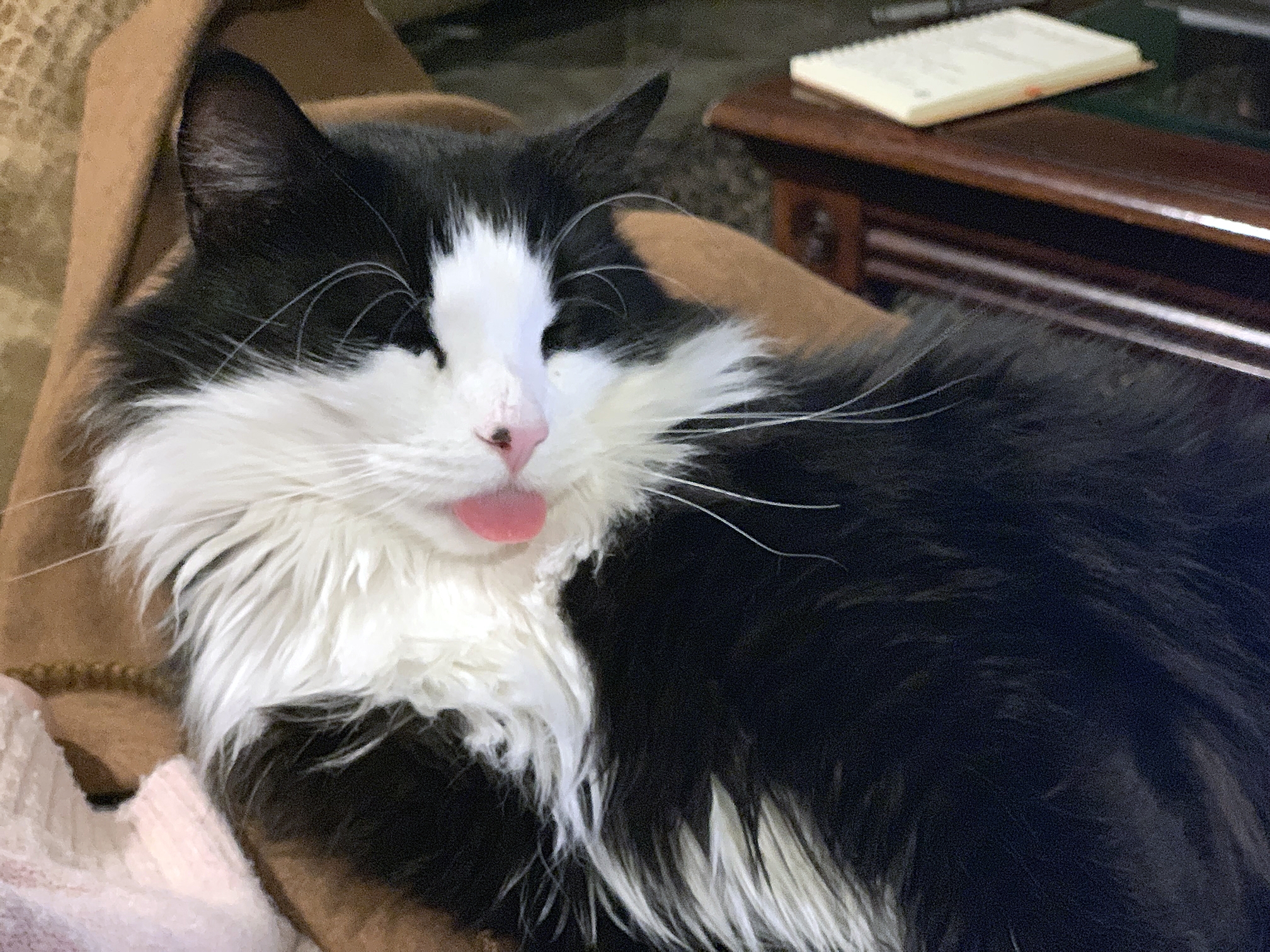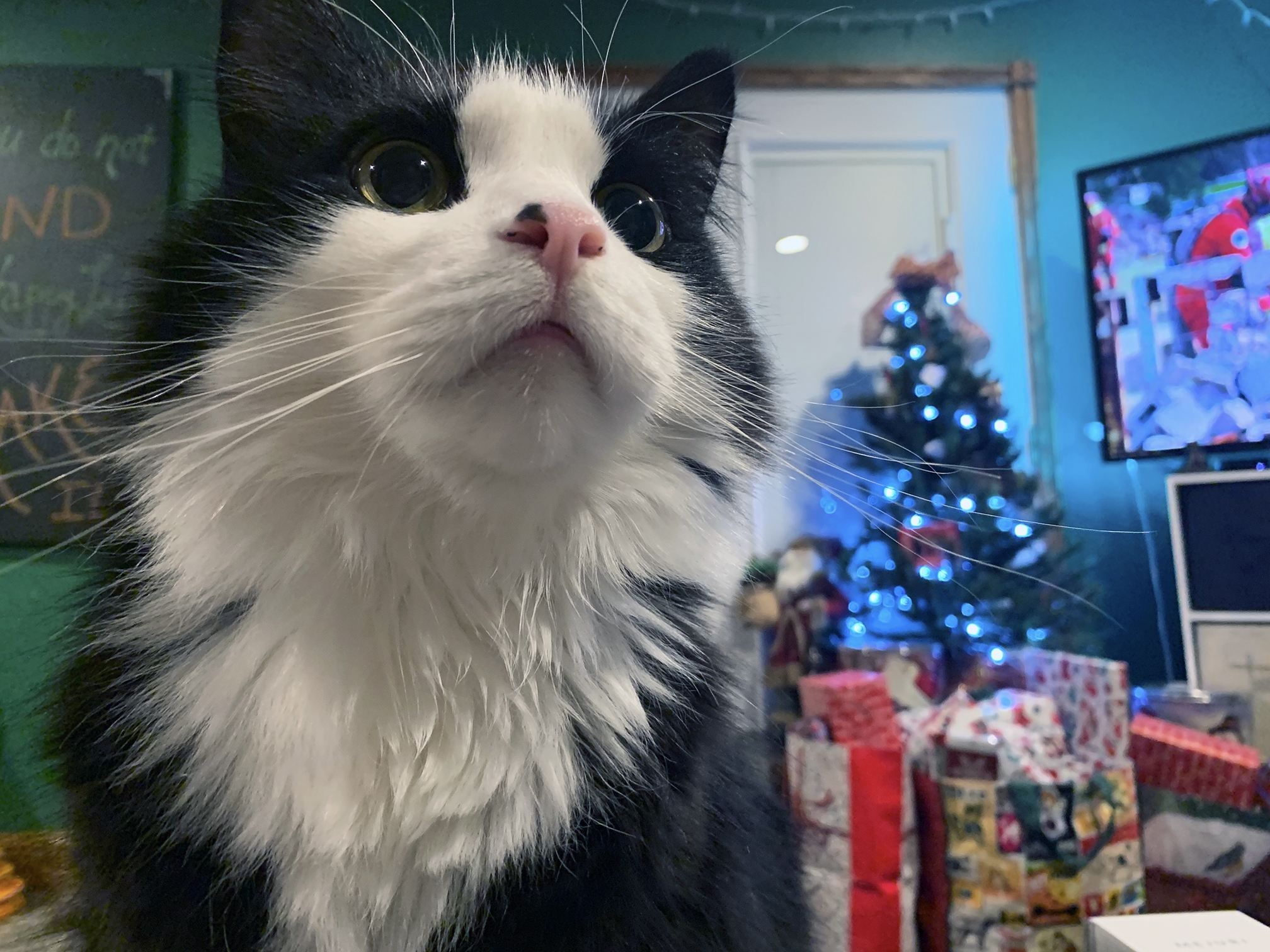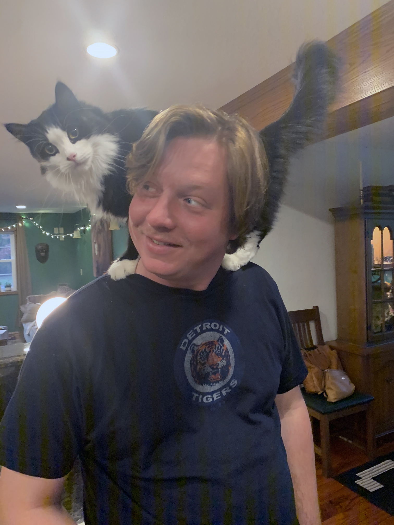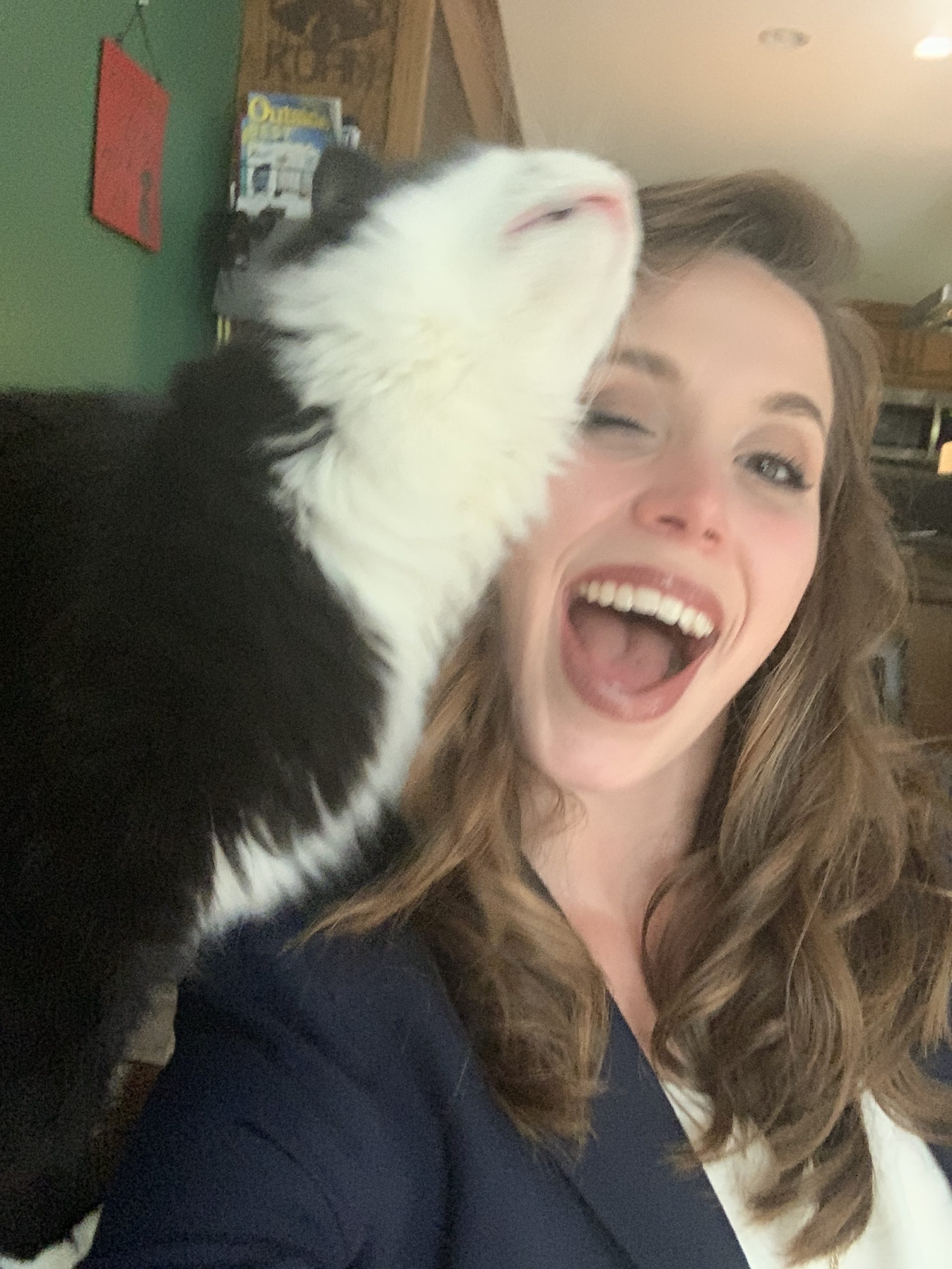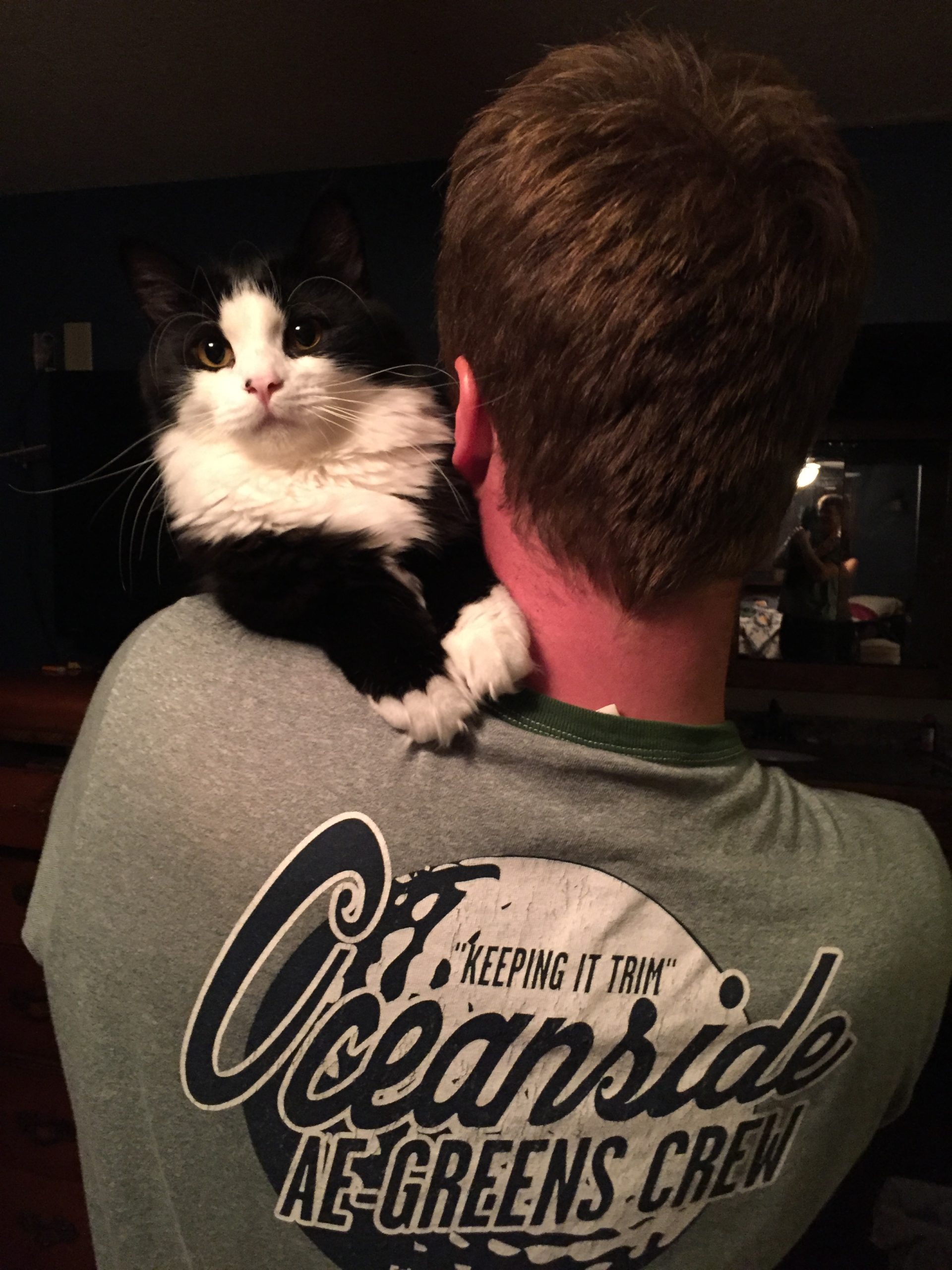 We know Moby looks a little unhappy here. But this cat puts up with his mom and dad kissing him because he loved us. Fear not, he was given a treat after this! LOL.