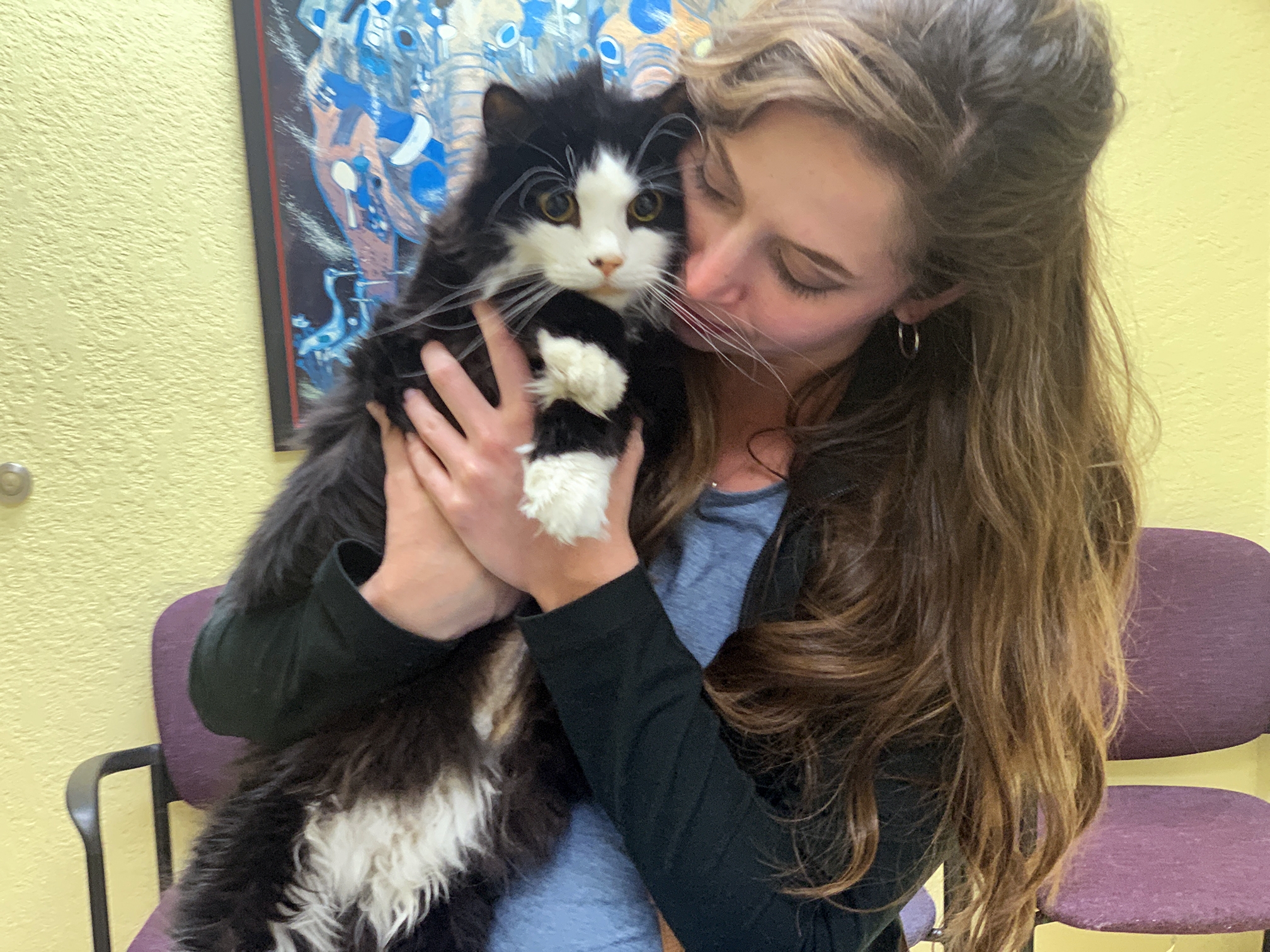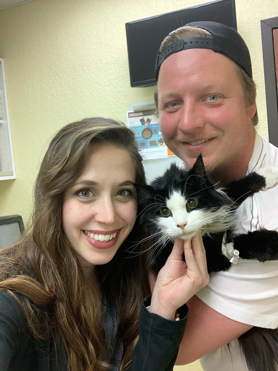 But she quickly came back out saying it wasn’t a UTI and that something more serious was wrong. He would need to stay a few nights at least and needed an IV, blood work, and X-rays to diagnose swelling in his abdomen. He had a condition we’d never heard of called hepatic lipidosis, also known as “Fatty Liver Syndrome,” which can often be fatal and is complicated and ill-understood in cats. Suddenly that vision of seeing her walk away with our sweet tuxedo cat in a cage became a strange realization: